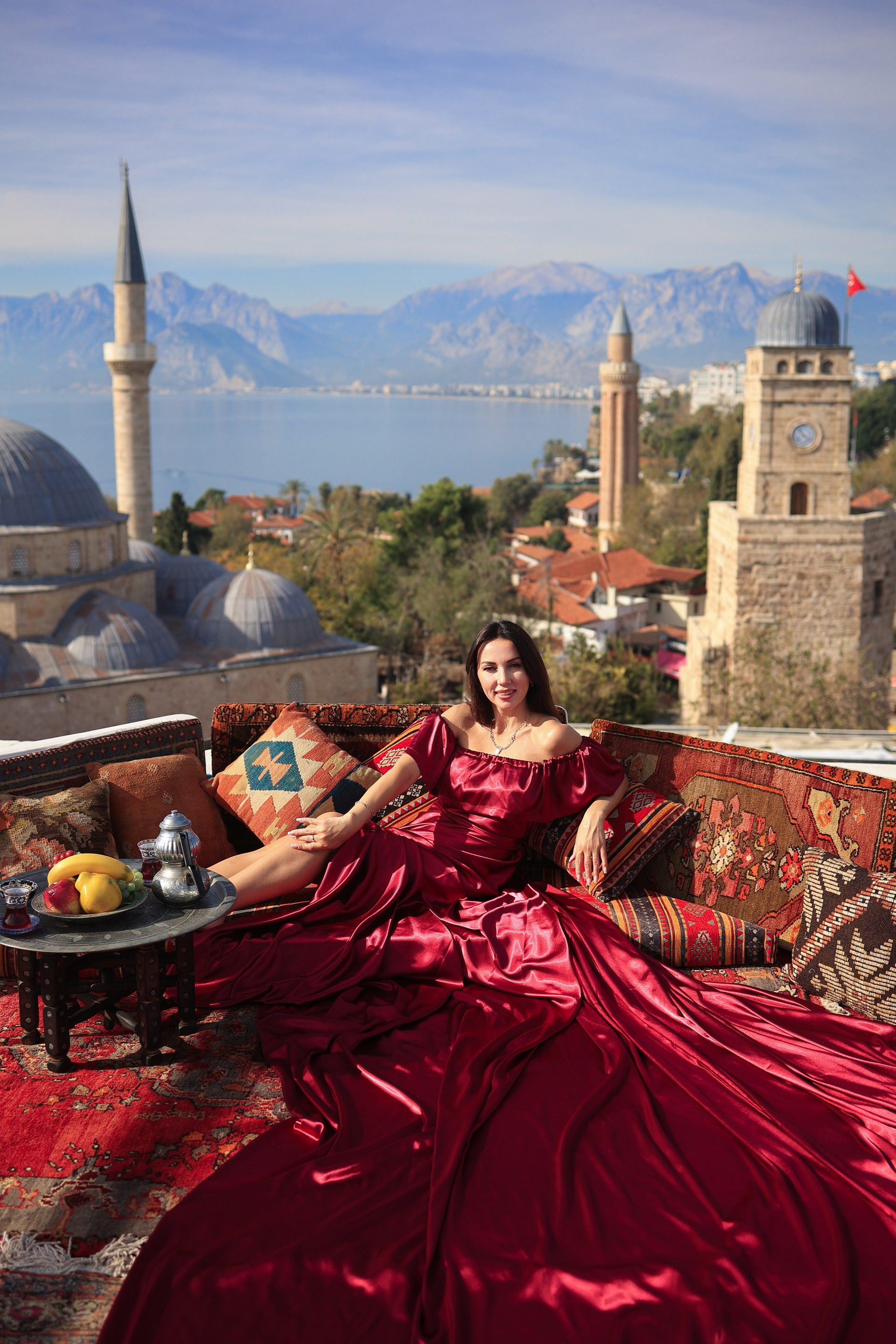 Представляем вам новую эксклюзивную локацию этого сезона — атмосферная крыша с панорамным видом на старый город Анталии — Калеичи, его черепичные крыши, минареты и море на горизонте. Это не просто фотосессия — это путешествие во времени и стилях, воплощённое в трёх уникальных зонах: